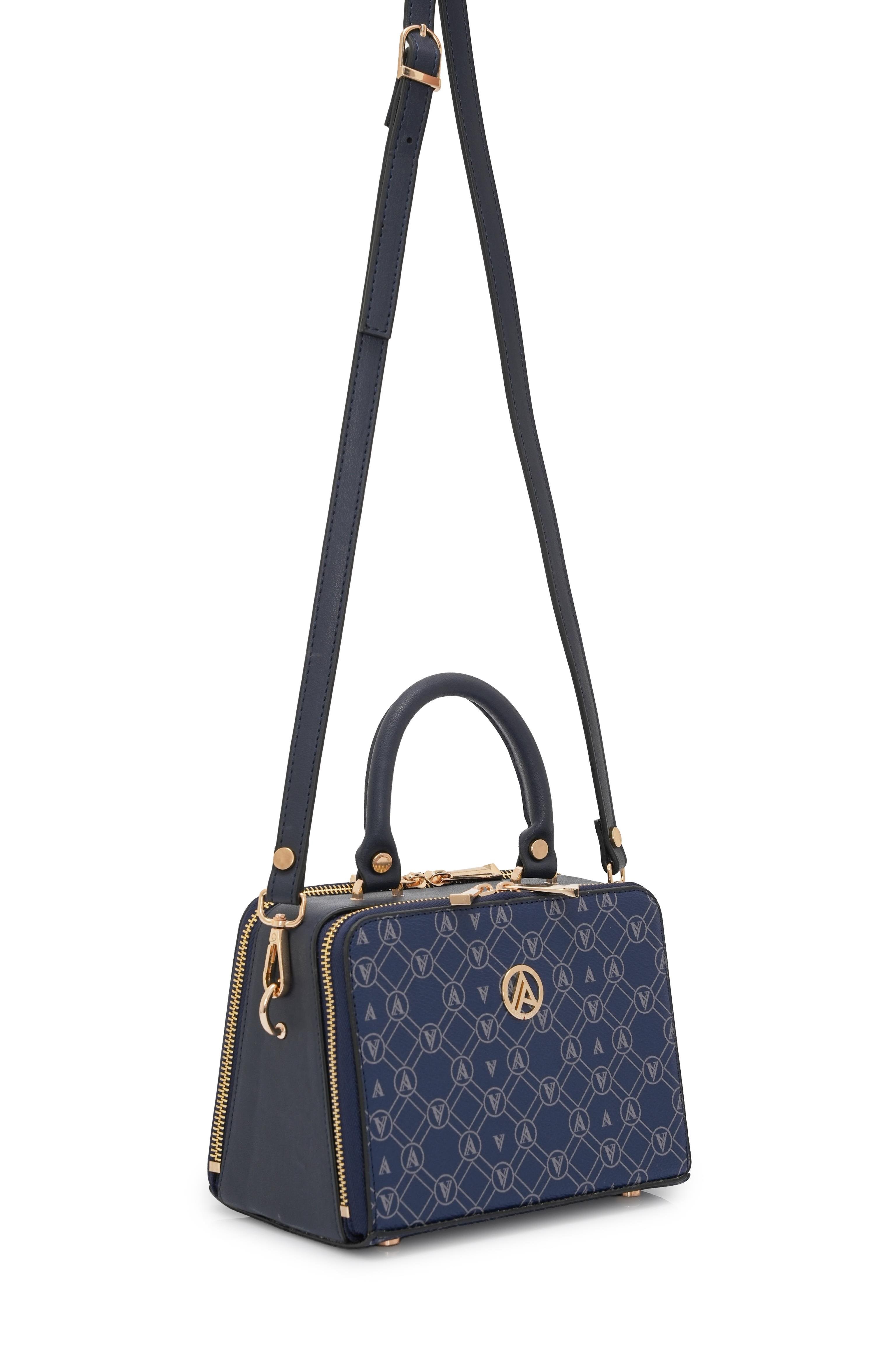 Armine Trend Piramit Çift Körüklü Omuz ve El Çantası Lacivert Baskılı ARM168